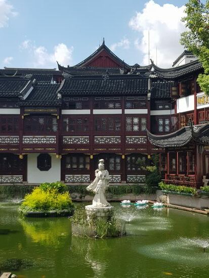 Direkt neben der Brücke befindet sich auch ein altes traditionelles Teehaus. Eigentlich wollten wir in den wunderschönen Yu Yuan Garten, doch dieser war leider zu der Zeit, als wir in Shanghai waren, gerade geschlossen. Dies war umso bedauerlicher, als dass Stefan mir diesen so angepriesen hat, dass ich richtig enttäuscht war. Aber nun, da konnte man nichts machen und so entschieden wir uns kurzerhand, einen teuren Tee in dem traditionellen Teehaus zu trinken. Im unteren Bereich kann man verschiedene Teesorten und dazugehörige Souvenirs kaufen. Wir saßen in der ersten Etage und hatten von dort einen schönen Blick auf die Brücke. Der Tee war gut, aber teuer. Dann sind wir noch ein bisschen durch die Straßen in diesem Viertel geschlendert und haben Schaufensterbummel gemacht. Die Läden sind hier überwiegend sehr hochwertig. Ich denke, man kann dort gute Souvenirs kaufen. Das einzige, was wir jedoch gefunden haben, war ein Terrakotta-Krieger an einem Stand. Auch wenn dies vielleicht etwas kitschig war, wollte ich doch ein kleines Andenken davon.