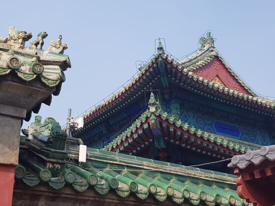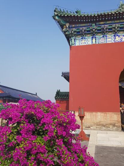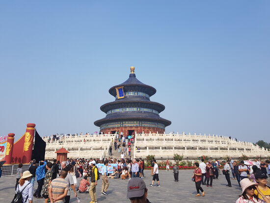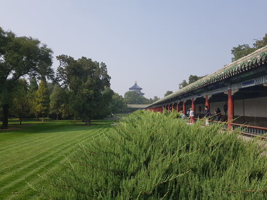 An unserem letzten vollen Tag in Peking nahmen wir uns noch zwei weitere Sehenswürdigkeiten vor, für die wir am Anfang keine Zeit hatten. Vormittag sind wir mit der U-Bahn in den Süden der Stadt zum UNESCO Welterbe, dem Himmelstempel, gefahren. Dieser befindet sich in einer sehr weitläufigen Parkanlage zusammen mit anderen Tempelanlagen und man braucht schon etwas Ausdauer, um alles zu erlaufen. Wir hatten nicht nur für chinesische Verhältnisse richtiges Traumwetter, sodass die Farben in der Anlage wunderbar zur Geltung kamen.