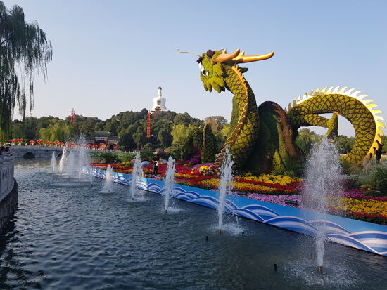 Am Nachmittag ging es dann in den Beihai Park, der in unmittelbarer Nähe unserer Unterkunft lag. Wir müssen gestehen, dass wir zu dem Zeitpunkt aufgrund der Masse an Eindrücken auf unserer Reise schon sehr gesättigt waren, sodass wir Schwierigkeiten hatten, die Schönheit dieses Parks für uns ausreichend zu würdigen. Aber auch objektiv betrachtet ist der Park ein absolutes Highlight und sollte auf keiner Pekingreise fehlen. Besonders schön ist der See inmitten des Parks, was dem Ganzen eine sehr romantische Atmosphäre verleiht. Man kann hervorragend am Ufer entlang schlendern oder einfach an der Sehenswürdigkeit "Wulongting" innehalten und den Moment genießen.