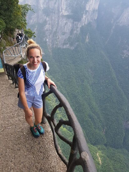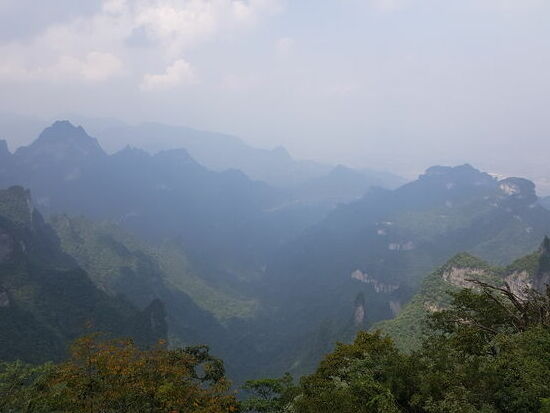 Heute wollten wir auf den Hausberg von Zhangjiajie. Wie immer waren wir etwas zu spät. Wir konnten fußläufig aus unserer Unterkunft dorthin, doch ein bisschen früher am Tag, am besten gleich nach Öffnung der Seilbahnstation, wäre es besser gewesen. Auch an diesem Tag war es wieder sehr sehr heiß und die Klimatisierung in der Seilbahnstation nicht die Beste. Der Ticketkauf ging schnell. Was uns etwas überrascht hat, war der Preis der Tickets. Natürlich für das, was einem geboten wird, schon gerechtfertigt, aber dennoch sehr viel. Wir haben uns für Option A entschieden, bei der man mit der Seilbahn hochfährt und mit dem Bus wieder hinunter. Nach etwas Recherche im Internet scheint dies auch die beliebtere Route zu sein, da man so von der „Heaven’s Gate Cave“ die 999 Stufen nach unten läuft und man diese bei Option B emporsteigen müsste… Bis zum Einstieg in die Seilbahn mussten wir dann eine knappe Stunde warten, was in der Hitze der Wartehalle teilweise unerträglich war. Aber die Fahrt auf den 1518 m hohen Berg entschädigt definitiv dafür!!! Sie wird oft als die längste Seilbahn der Welt mit 7,4 km bezeichnet, was sie aber nach unserer Recherche nicht mehr ist, dennoch sehr spektakulär.