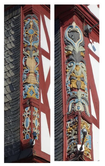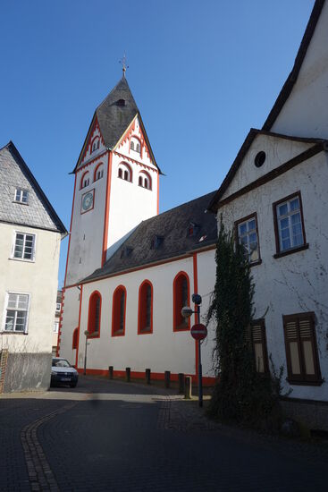 Nassau - Lahn-Km 117 - ist eine geschäftige Stadt mit einem recht imposanten Rathaus. Als großes Fachwerkhaus 1607/09 von einer Stein’schen Nebenlinie erbaut; ging es später in den Besitz der Adolzheimer über, die dem Haus seinen Namen Adelsheimer Hof gaben.