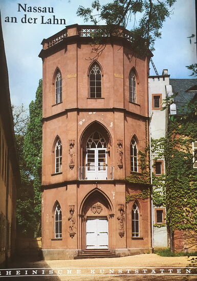 leider ist auch dieser Bau incl. Park nicht zugänglich - in einer Broschüre des Rhein. Vereins ist der achteckige Turm noch rot gestrichen und das Gebäude von Gewächsen überwuchert (vgl. Foto)