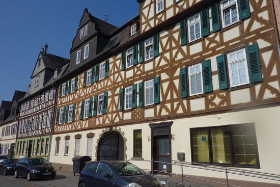 Altstadtstraße zieht sich mit ihrem gebogenen Verlauf um den Fuß des Schloßbergs herum. Sie machte einen großen Teil der mittelalterlichen Stadt aus – ungefähr die östliche Hälfte! Parallel dazu verlief die Stadtmauer, deren Reste heutzutage noch in Mauern von Häusern und Höfen stecken.