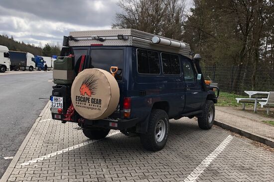 Vor vier Tagen sind wir an einem 6. April um halb sieben bei Schmuddelwetter in Hamburg auf unsere Tour nach Tunesien gestartet. Unser Fahrzeug ist ein 14 Jahre alter Toyota HZJ 78, dessen Inneneinrichtung wir in den letzten 3 Wochen auf unsere Reisebedürfnisse umgebaut haben. Sprich: Er war mit allem Schickimicki ausgerüstet und wir haben ihn etwas “entluxufiziert“; haben ihn dann mit Gardinen und Sitzpolstern wohnlicher gestaltet, und haben ein paar nette Kleinigkeiten eingebaut, damit man auch bei schlechtem Wetter und bei geschlossenem Zeltdach unauffällig als parkendes Auto eine Nacht dort drinnen verbringen kann.