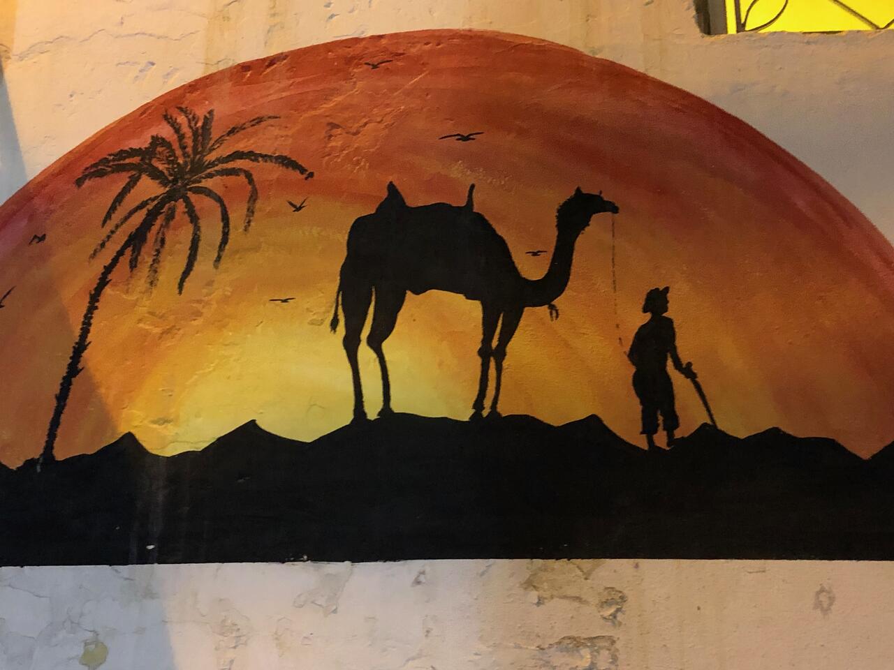 Es ist ganz still heute Morgen, als ich um halb 6, nachdem der Muezzin meinen Schlaf mit seinen Gesängen beendete, zur Dusche gehe. Die gesamte italienische Gesellschaft liegt in ihren Dachzelten. Tische und Stühle von den abendlichen Gelagen stehen noch herum. Nichts regt sich. Die Luft ist warm, der sandige Wind hat nachgelassen. Ein blauer Himmel spannt sich über den von der Morgensonne beschienenen Palmen.