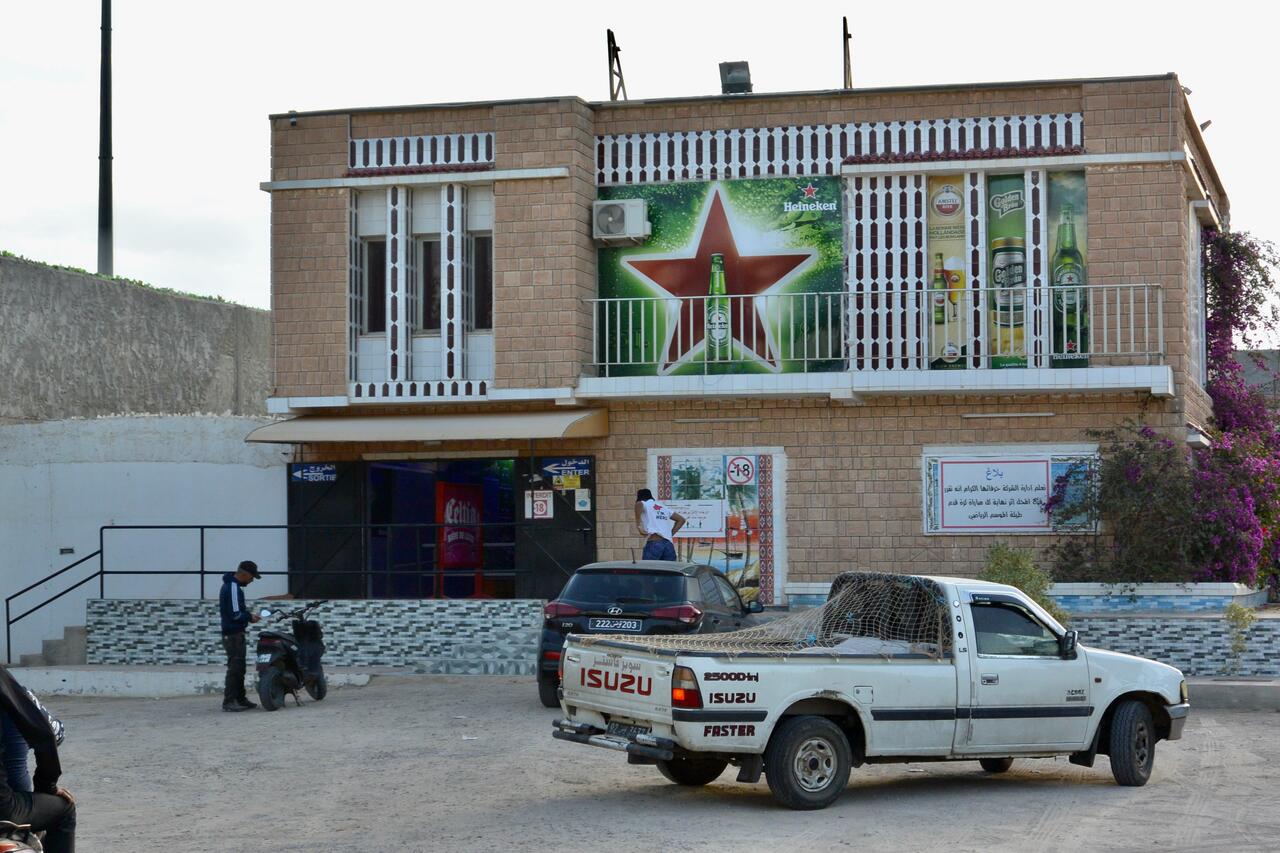 Von einen Händler, der beim Kartenspiel vor seinem Laden sitzt, bekommen wir genauere Auskunft. „Ihr müsst etwa 5 km in Richtung Ben Guerdane fahren. Dann kommt ihr zu einem Stadion. Dort am Stadion ist ein Geschäft, in dem ihr alkoholische Getränke kaufen könnt.“