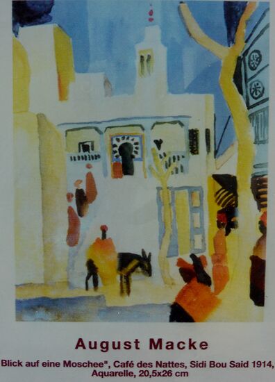 Da gibt es teilweise deutsche Texte aus Zeitungen, die die Reise der Maler kommentiert haben, oder in Französisch verfasste Dankesbriefe an den Betreiber des Cafés. Man kann sich hier sehr gut vorstellen, wie es vor einhundert Jahren zuging, und welches Erstaunen diese exotische Welt bei Reisenden hervorgerufen haben mag, die sich darauf eingelassen haben, diese Fremde kennenzulernen.