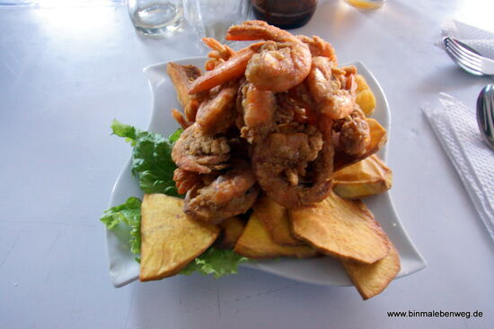 Einige abgehackte "Körperteile" sollten kurze Zeit später bei uns auf dem Teller landen, sei es in Form von Ceviche, Fisch, Garnelen oder anderem Meeresgetier. Besonders sauber war es in dem Lokal vielleicht nicht, mörderisch war auch die Klimaanlage. Freiwillig ziehe ich bei 35 Grad keinen Pullover an und ein Käppi auf. Das Essen aber war unglaublich lecker!