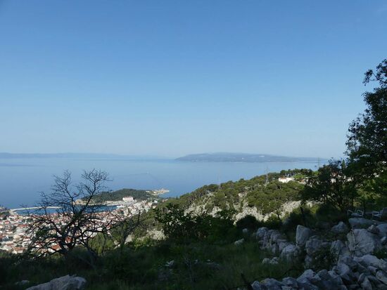 Heute ist nochmal wandern angesagt. Komoot hat mir eine Runde zum Biokovo botanischen Garten vorgeschlagen. Um 07:30 geht es los. Zuerst zum Bäcker, Frühstück kaufen (d.h. erstmal runter). Dann beginnt der Aufstieg und auf den ersten Metern kommen mir einige Schülerinnen entgegen, die diesen Auf- und Abstieg wohl täglich machen. Der erste Kilometer steigt mal mit 22% oder auch nur mit 18%. so dass ich schon nach ca. 500 m eine Trinkpause brauche. Ist aber auch schon ein Super Ausblick. Ich sitze jetzt im Hafen und nutze das öffentliche WLAN , das mir allerdings beim ersten Versuch Schwierigkeiten machte und meinen getippt Bericht nicht gespeichert hat. Jetzt also der 2. Versuch. Bis ich oben im Dorf Makar bin, gehe ich nur Straße, aber ohne ein fahrendes Auto zu sehen. Im Dorf setze ich meinen Rucksack ab, um Schweiß zu wischen und mich zu orientieren, als sofort eine Katze an meinen Rucksack möchte -- aber nein, das ist mein Frühstück. Noch ein paar Meter Straße ohne Steigung und dann durch ein Privatgelände auf den Bergwanderwag, zuerst ein Trampelpfad für eine Person, dann los er Kies und Steine. Ich finde einen Stein für meine Frühstückspause.mit einem sehr schönen Ausblick. Heute der 2. Versuch ein deftiges und ein süßes Stück zu haben, aber wieder fehlgeschlagen. Gestern hatte ich ein Mohncroissant mit Schafskäsefüllung, heute so eine Art Puddingteilchen, der Teig ist auch süß, aber innen wieder Schafskäse --- ist für mich trotzdem o.k. Nach der Pause ist meine erste Wasserflasche leer.und ich habe noch nicht die Hälfte des Weges. Es geht geröllmäßig weiter, aber auf einer Höhe. Dann kommt eine Wegkreuzung (komoot hat aber nur einen Weg hier). 50%-Chance und ich greif daneben. Aber ehe komoot mich warnt, habe ich schon selber geschaut und drehe um. Es geht kraxelig weiter bis ich an der alten Kapelle ankomme. Hier und im nicht mehr fernen botanischen Garten ist einiges EU gefördert, was mir jetzt eine Ruhebank zur Verfügung stellt. Die Pause tut gut, als ich allerdings weiter gehe, komme ich an einen von der EU geförderten Rastplatz, mit einer Ruhebank und einem Aussichtsturm. Die anklicken ist schön, aber kommt zur falschen Zeit. Dann kommt der botanisch Garten und es geht bergauf über Kies, aber im Schatten. Hier gibt es noch ein Kastell und einen Weg, da würde bei uns keiner in den Garten gehen -- Wanderschuhe sind sehr hilfreich dann kommt die Ansage, rechts ab, aber das ist nichts für mich, loses Geröll mit einigem Gefälle. Auf der Karte sehe ich, dass es noch einen Weg gibt und so gehe ich weiter. Der besteht auch nur aus losem Gestein, verläuft aber in Serpentinen bergab. Ich komme heil unten an und steige dann weiter ab, schön zwischen Pinien. Im Ort dann die Entscheidung, nächste links, bei drei Straßen erwische ich wieder die falsche. Ich kann aber am Ende wieder rechts und komme auch dahin. Der weitere Straßenverlauf ist Baustelle, ich dafür aber durch. Der Rückweg geht nur über Straßen, aber eben wieder ohne fahrende Autos. Eine schwierigere Stelle kommt noch, da wurde frischer Asphalt aufgetragen, aber das bedarf keiner Absperrung, so dass ich fast rein getreten wäre, so war es nur der Wandestock. Im nächsten Dorf muss ich mal meine Füße lüften, lese während dieser Pause und trinke mein letztes Wasser. Passt aber, denn nach weiteren 10 Minuten komme ich an meiner Unterkunft an. Duschen! !!!! Der Rest des Tages ist buchen für morgen, Unterkunft bezahlen und ausruhen dann gehe ich runter und einmal auf die andere Seite des Hafens, trinke ein Bier und lass den Tag ausklingen. Morgen geht es nach Korcula wieder mit Fährfahrt.