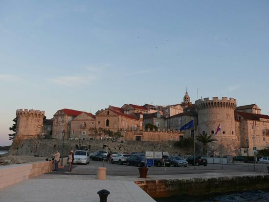 In Korcula - Stadt finde ich schnell zum Hafen, stelle da mein Moped ab und laufe den Rest zur Unterkunft. Hier der etwas ungewohnte "selbst Check in": Eingangstür mit Klinke öffnen, ein Zimmer aussuchen, fertig. Für heute reicht es auch, denn heute war der erwartete Tag: während der Fahrt schön, aber wehe ich halte an: heiß