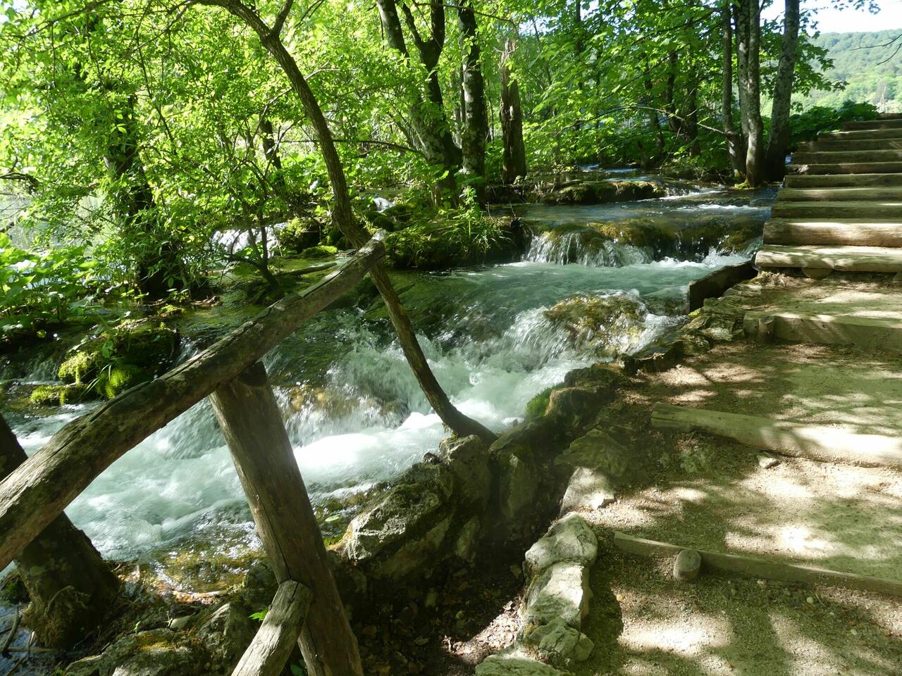 So jetzt zu heute, keine Streckenbeschreibungen, sondern nur Natur und auch Menschen. Ich war schon überrascht, wie voll es doch war und erst recht, als ich dann so gegen 13:30 fertig war. Nach dem ich mein Ticket hatte, ging es runter zum Boot auf die andere Seite. Die Komoot - Planung hätte ich mir sparen können, alles sehr gut beschildert. Na gut so habe ich die Tour aufgezeichnet und ihr könnt diese über diesen Link sehen: https://www.komoot.de/tour/771633185?ref=wtd .Die Mitfahrer auf dem Boot haben sich sehr schnell zerstreut und ich bin dann auf meine geplante Tour. Mit Stöcken und Bandage ging es recht gut. Der Weg ist aber auch einfach und ich mache viele Fotostopps. Die hier angehängten Bilder und die in der komoot -Tour sind sehr ähnlich, außer dass in der Komoot - Tour mehr enthalten sind.Ich habe den ersten See geschafft und möchte auf den Weg zu den Wasserfällen --- Leider verloren, gesperrt wegen Holzfällarbeiten (scheint mir nachzulaufen ). Also weiter und immer wieder kleinere Wasserfälle. Dann kommt wieder einer dieser langen Holzsteege, auf dem ich an die andere Seeseite komme. Hier laufe ich entgegen meiner geplanten Richtung und komme bald zur Busststion mit WC, gut so, leider ist gerade ein Busladung ausgestiegen und ich muss warten. Weiter geht es am letzten sehr großen See vorbei, dessen Umrundung ich mir aber spare. Seeseite wieder gewechselt und zurück. Hier gibt es wieder viele Fotostopps bis ich dann nochmal die Seeseite wechsel. Es geht rauf und runter, mit immer neuen Wasserfall-Fotos bis ich wieder an den gesperrten Weg komme. Von dieser Seite komme ich bis zu den Wasserfällen und mache weitere Fotos. Danach umrunden ich weitere Seen, bis ich wieder an der Bootsanlegestelle ankomme. Auf den Bänken mache ich Pause und beschließe, da es erst kurz nach 12 ist, den großen oberen See noch bis zu der Bootsanlegestelle entlang zu gehen und dann mit dem Boot zurück. Hier laufen anscheinend nicht so viele lang, denn es kommt keine Bank, bis ich oben angekommen bin. Hier ist der Teufel los, mehrere Schulklasse machen heute wohl ihren Ausflug. Hier ist wieder Ticketkontrolle, ich finde meins aber nicht, komme aber mit der Quittung rein und auf das Boot. Entspannt werde ich zum Punkt 1 gebracht, aber im Gegensatz zu heute morgen ist das Boot richtig voll -- so wechseln die Ansichten. Aussteigen und ab zur Unterkunft. Allerdings muss ich nach dem Anstieg die Bank für eine Pause nutzen und meine erste Wasserflasche leeren, in der zweiten ist auch nur noch ein Rest. Das letzte Stück am Fußballplatz und Schilift vorbei fällt mir schon schwer und ich bin froh, als ich dann unter der Dusche stehe. Hat aber alles gut geklappt und den Nachmittag kann ich für die Regeneration nutzen. Das war es für heute, ach ja 17 km war heute die Leistung. Doch noch nicht Schluss. Auf Nachfrage kann ich hier nur bar bezahlen, d. h. Zum nächsten ATM, natürlich am Eingang zum Park. Dann mal los, wieder runter und zum Glück hatte ich vorher im Internet gelesen, nicht am Eingang, sondern in den Hotels am Eingang. Also nicjt ganz herunter, sondern ca. 30 Höhenmeter gespart. Der Automat verweigert die Auszahlung - na super. Wieder Glück, hinter mir wartet ein Kroate und der bekommt auch nichts. Daraufhin nimmt er mich im Auto mit, denn das nächste Hotel ist ca. 1 km entfernt. Da bekommen wir beide Geld und er fährt mich sogar bis Jezerce. Mir reichts für heute mit dem laufen.