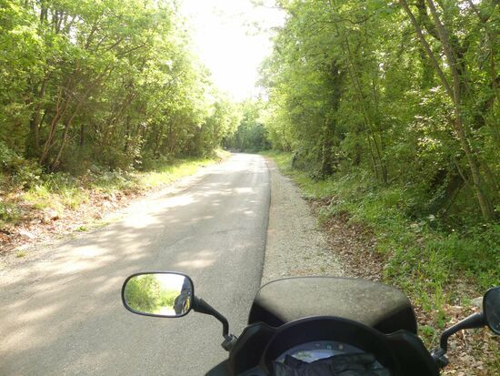 Der Tag fängt nicht gut an, da ich den Instantkaffee im Studio probiere -- absolut nichts für mich. Dann kippe ich noch fast mein Moped um, als ich beim rausschieben mit der Gepäcktasche am Hoftor hängen bleibe -- ganz knapp nochmal gut gegangen. Nach einer kurzen Beruhigungspause fahre ich dann los. Zuerst fahre ich in Richtung der Tropfsteinhöhle über kleine Straßen und muss mich an die Geschwindigkeitsbegrenzungen gewöhnen: vor fast jeder Kurve 40km/h, nach Ortschaften oftmals 60 und vor jeder Kreuzung 50. Wofür die Schilder sind, keine Ahnung, hält sich keiner dran. Die Straßen sind oftmals kleine Alleen mit kleinwüchsige Bäumen als in Deutschland. Während der ganzen Fahrt zur Höhle fahre ich immer wieder durch Olivenbaumplantagen -- habe noch nichts von kroatischem Oliven gehört. Kurzer Stoppen am Parkplatz der Höhle, nichts los. Als ich dann weiter fahrender kurviger, falsche Straße. Also drehe ich und fahre dahin, was kurviger mir anbietet (1. Bild): nichts meins und ich drehe nochmal und komme so wieder auf die Route. Kroatien ist hier ganz schön grün und einsam, da kommt selbst die Eifel nicht mit. So geht es weiter bis zu meinem 2. Wegpunkt: das historische Dorf Valle Balle. Kann ich nur zu Fuß rein, da alle Wege unasphaltiert sind. Kurze Runde, finde ich nicht so beeindruckend. Dann geht es weiter und so gegen Mittag muss ich kurviger stumm schalten : er verweigert die Küstenstraße, die ich aber fahren möchte. Also ohne navi nach Karte. Die Küstenstraße ist sehr schön bis ich nach Opatija komme. Ab hier nur noch durch Stadtgebiet bis ans Ende von Rijkaard --- nicht schön. Der Rest bis zur Insel Krk ist wieder schön. Die Überfahrt zur Insel dauert, da dort eine Baustelle mit Ampel, bei der ich schon dachte, die kennt nur Rot. Davor in der Sonne stehen --- kein Spaß. Ich fahre noch in den Ort Krk und schaue mir die Altstadt an. Die finde ich schöner als Rovinj. In Mopedsachen nur eine kleine Runde und dann zu meiner Unterkunft im neueren Teil von Krk. Riesige Hotelzimmer mit Pool, so dass ich eine Runde schwimmen kann -- ganz alleine. Kurze Anmerkung an meine Mopedkollegen: heute 5. Etage, sonst immer Zimmer ganz oben, also wie immer.