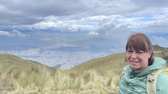 Von hier hat man einen tollen Blick auf die umliegenden Vulkane—ganz undeutlich in den Wolken und Nebel kann man auch den 5897m hohen „Cotopaxi“ sehen