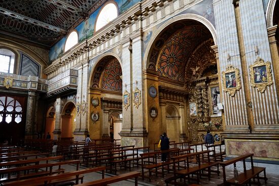 Nun besuchen wir die wohl schönste Kirche von Quito, die ist uns schon gestern bei unserer Ankunft aufgefallen