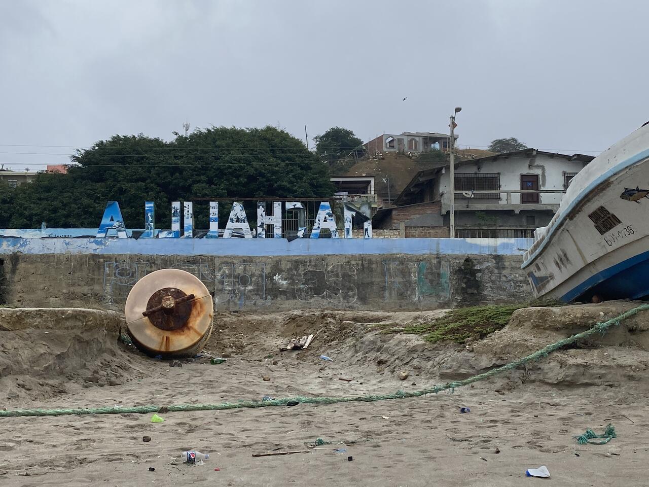 Wir lassen uns vom Fahrer gegen 15.30 Uhr in Machalilla absetzen und nehmen ein Taxi für die letzten 2 km bis zum Hotel—hier der erste Blick auf Machalilla