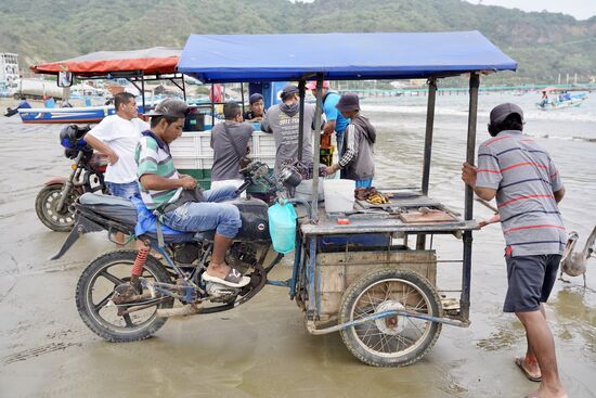 In Puerto Lopez buchen wir uns dann im „Victor-Hugo“ ein und lernen beim einchecken gleich Victor kennen—dann machen wir diese Fotos von unserem Balkon