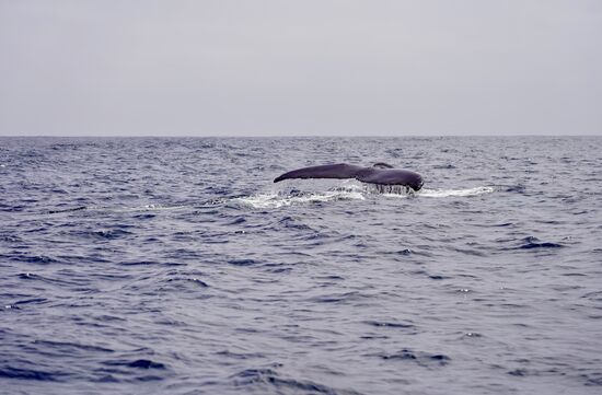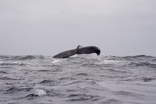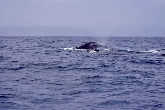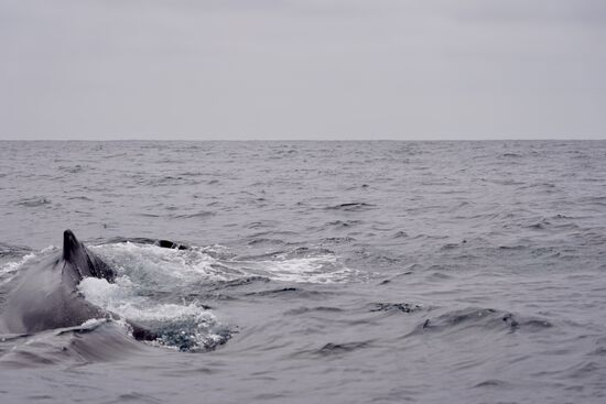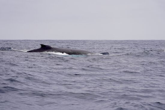 Wir hüpfen von einer Seite des Bootes zur anderen—je nachdem wo die Wale auftauchen-die jüngeren Leute gehen nach vorn oder ganz nach oben aufs Oberdeck-das trauen wir uns nicht