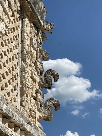 Uxmal bedeutet in der Maya-Sprache „dreimal gebaut“. Es gibt Hinweise, dass diese Stätte schon vor Christus bewohnt war. Die Blütezeit der Maya war hier zwischen dem 7. und 10. Jahrhundert nach Christus. Zwei Jahrhunderte später stand Uxmal leer. Heute bewohnen nur noch die Leguane diese Stätte