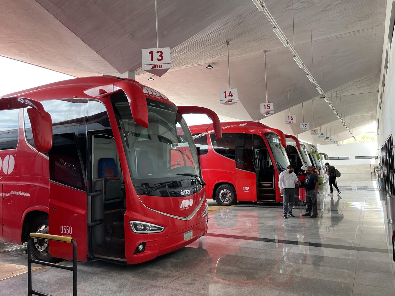 Hier in Mérida ist der Busbahnhof ziemlich groß und schick—ich freue mich auf die Fahrt, denn ich liebe das Busfahren!