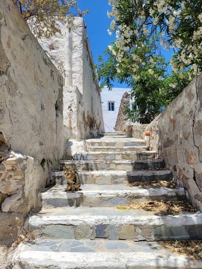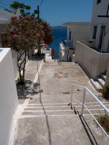 Der Wind blies den ganzen Tag stark und so streiften wir geschützt durch die Stiegengassen von Adamas.