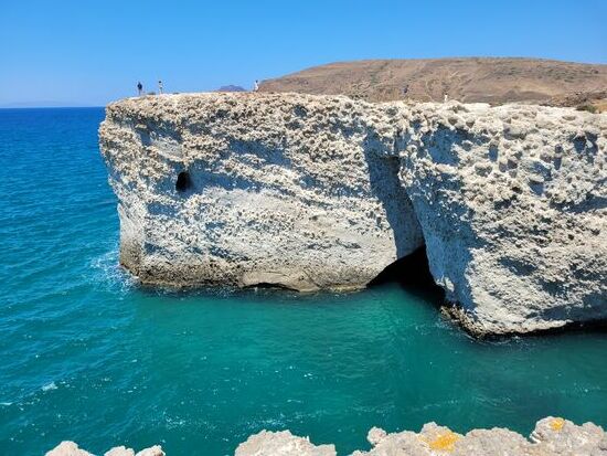 Papafragas Beach - von Felsen und Höhlen eingeschlossen. Über einen schmalen Steig kann man hinunterklettern.