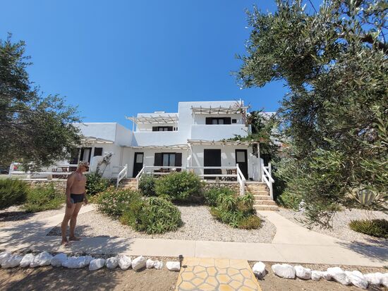 Leider ist ab Freitag die Anlage ausgebucht, da hier eine Hochzeit stattfindet. Viele Tage haben wir dann nicht mehr um damit etwas Neues anzufangen. So haben wir Nikolas in Sifnos angeschrieben (wir waren vor 3 Jahren dort) ob er ein Zimmer für 2 Nächte für uns hat (er vermietet nur minimum 3 Nächte). Fünf Minuten später hatten wir die Antwort: Für uns wartet ein 2-Zimmer-Apartement mit Frühstück um EUR 70,-- per Day. So geht's am Freitag noch nach Sifnos.
