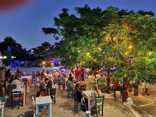 Am Abend ließ der Wind nach. Mit dem Bus fuhren wir auf die Plaka zum Abendessen und landeten in einer gemütlichen, kleinen Taverne.