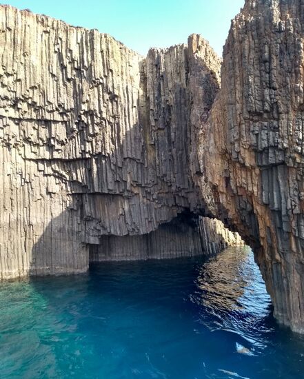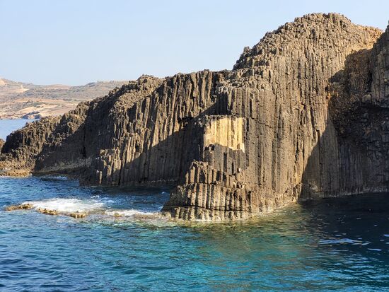 Glaronisia, die kleinen Inseln zwischen Kimolos und Milos, sind ganz etwas Besonderes. Sie bestehen aus erstarrtem Magna, welche in sechseckigen Säulen kristallisiert ist.