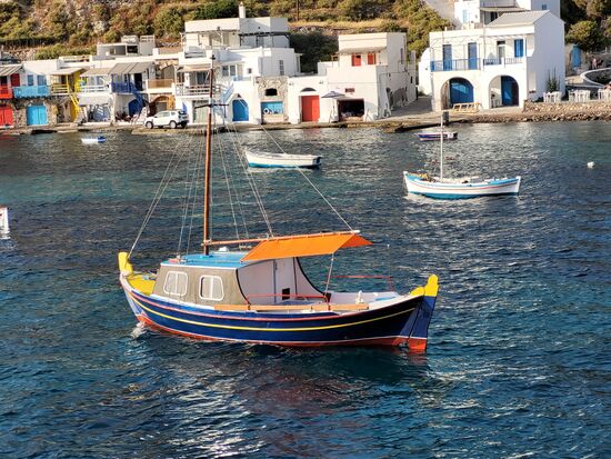 Klima, das Fischerdorf - unten der Wohnraum, wo auch das Boot garagiert wird, und oben wird geschlafen.