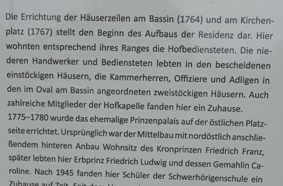 Das Hauptziel in Ludwigslust ist das imposante Schloss. Sandstein verkleideter Baukörper, alles prunkvoll verziert, E-förmiger Grundriss nach Versailler Vorbild, erbaut 1772-1776. Nach langjähriger Sanierung können mittlerweile die 18 Säle des Ostflügels besichtigt werden, ebenso die umfangreiche Gemäldegalerie. Ein Rundgang, bzw. Fahrt mit Rädern durch den Schlosspark mit Barockgarten wird lt. Reiseführer empfohlen.