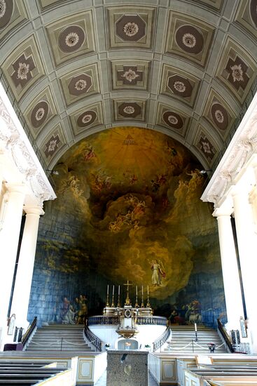 Wirklich sehens- und empfehlenswert, die Stuckarbeiten sind aus Pappmaché, dem sogenannten "Ludwigsluster Carton", was man aber nicht sieht, auch das Blattgold ist kein echtes Gold, sondern eine hauchdünne Metallfolie, Schlagmetall, in einer goldfarbenen Legierung, auch falsches Gold genannt.