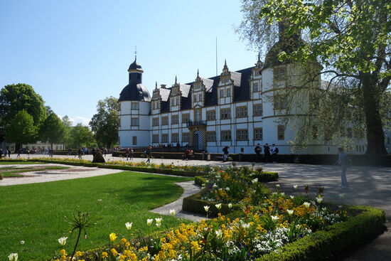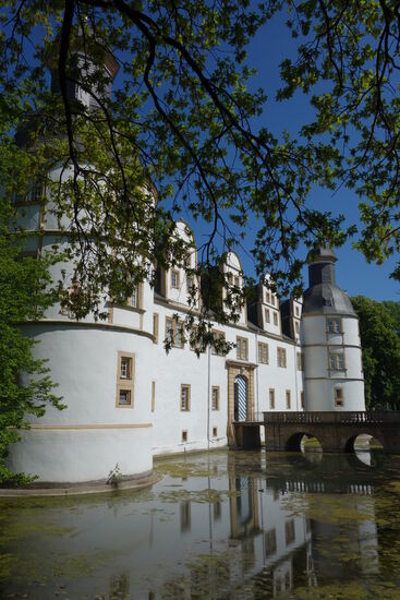 Wir beginnen unsere Reise mit einem Stop in Paderborn-Neuhaus, um das erste bedeutende Bauwerk der Weser-Renaissance anzuschauen. Es liegt in inselähnlicher Lage am Zusammenfluss von Lippe, Alme und Pader im Südostwinkel der Westfälischen Bucht.
