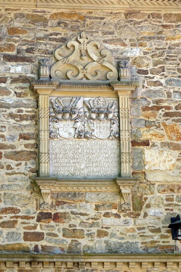 Erbaut im 14. Jahrhundert. Bis um 1640 führte der Weg in die Burg an dieser Stelle über eine Zugbrücke. Der vorgelagerte Graben wurde später nach und nach zugeschüttet. Im Obergeschoss des Turms befand sich eine Kapelle, später auch ein  Archiv sowie die Wohnräume des gräflichen Amtmanns. 1909, bei einer gründlichen Renovierung, erhielt das Dach des Gebäudes eine mit Moselschiefer gedeckte „Welsche Haube" im Stil der Renaissance.