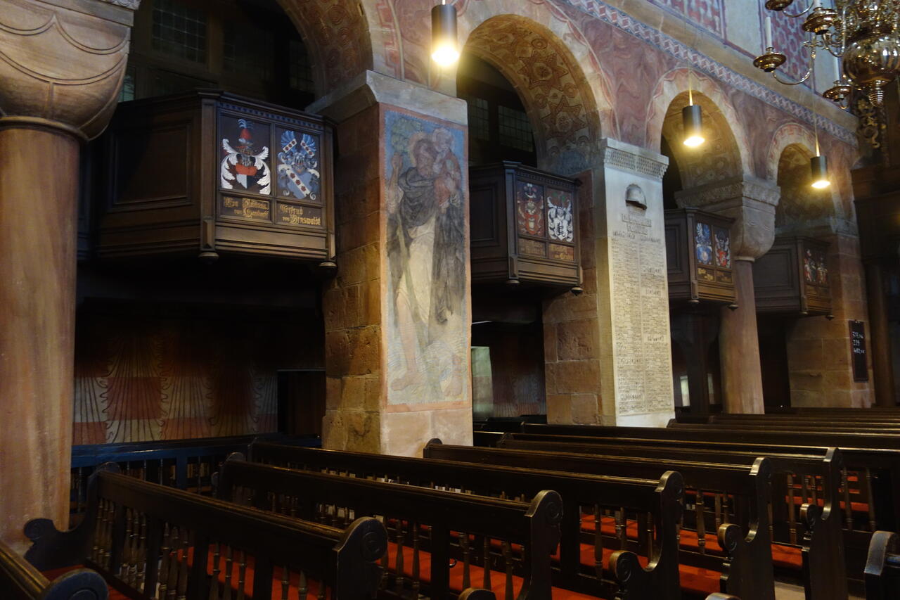Das mächtige Westwerk der Stiftskirche macht schon von weitem auf sich aufmerksam. Der Bau der Kirche in seiner jetzigen Gestalt ist datiert auf das Jahr 1254. Zeitzeugen des Jahrhunderte gelebten Glaubens finden sich heute in der gesamten Kirche wieder: ein Tympanon aus dem 12. Jahrhundert über dem Portal im Westwerk, die wunderbar schlichte Krypta als erhaltenes Zeugnis des allerersten Kirchenbaus, das Triumpkreuz aus dem 13. Jahrhundert, die Figur der Stifterin Helmburgis, deren Legende der Wandteppich von 1583 zeigt sowie viele Details der Architektur und der Ausgestaltung der Kirche.