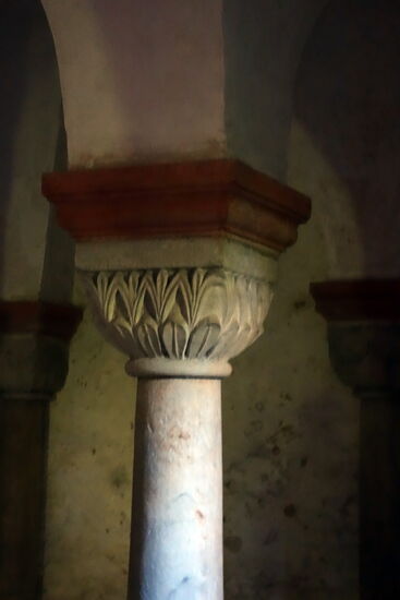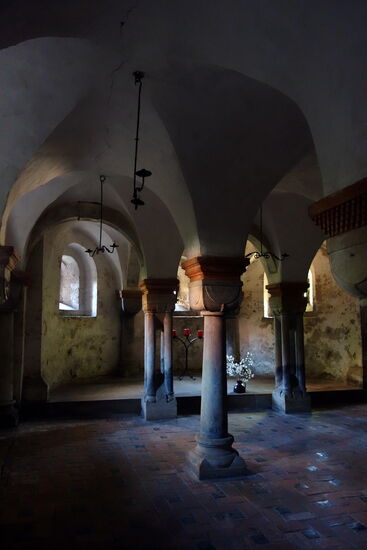 Das älteste Bauteil ist die dreischiffige Hallenkrypta aus der Zeit um 1120. Für die aus einem Stück gearbeiteten Vierlingssäulen hat man noch kein Vorbild in anderen Kirchen gefunden.