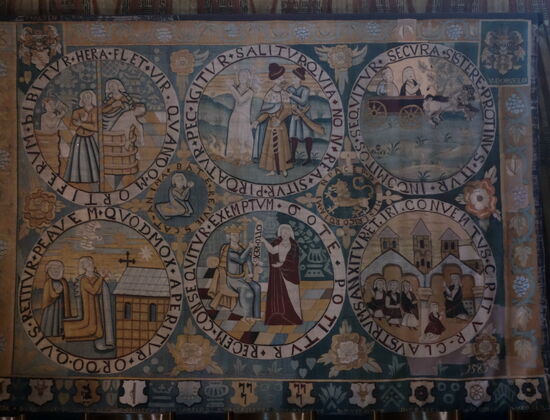 In einem abgetrennten Raum der Stiftskirche hängt inzwischen die Kopie eines Wandteppichs aus dem Jahr 1583, der auf sechs Bildern die Gründungsgeschichte des Stifts darstellt. Dieser Teppich inspirierte den Autor Manfred Hausmann zu seinem Legendenspiel Der Fischbecker Wandteppich (1955), welches mehrfach in der Stiftskirche in Fischbeck aufgeführt wurde.