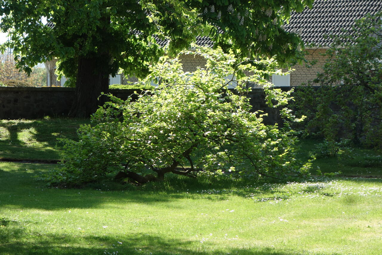 Im Klostergarten begegnen wir erstmals mit Bewußtsein einer Süntel-Buche. die eine seltene Varietät der Rotbuche darstellt. Süntel-Buchen beeindrucken durch ihre verdrehten, verkrüppelten, miteinander verwachsenen Äste und ihre sehr kurzen, drehwüchsigen Stämme.