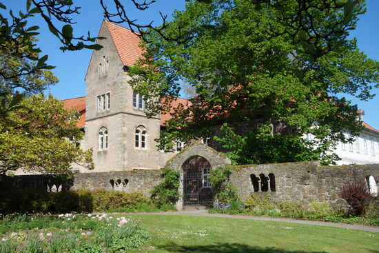 An die Westseite des Stiftes schließen sich die Gärten an. Der Abteigarten ist nach dem Vorbild historischer Gärten gestaltet worden, eine Oase der Ruhe und Entspannung. Direkt neben dem Abteigarten hinter der Fachwerkmauer