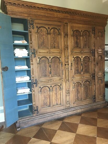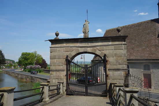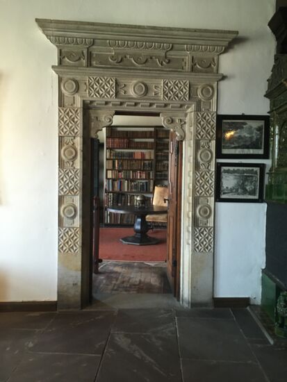 Die Tür des Südflügels hat in den Gewänden Nischen mit Muschelbekrönung mit Sitzkonsolen. Die Verwandtschaft der „Türgerüste" mit den Barntruper Portalen ist nicht zu verkennen.