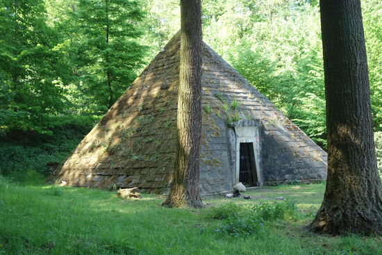 Nach Abschluß der Führung kann man noch einen kleinen Spaziergang anschließen, der über das Gelände des Ritterguts führt und u.a. an einer Pyramide vorbeiführt, die Georg Laves 1855 als Begräbnisstätte der Familie von Klencke errichtet hat. Sie wurde bis 1942 benutzt und steht heute leer.