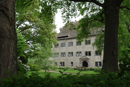 Südlich und westlich des Schlosses liegt der Wirtschaftsbereich des früheren Gutshofes mit steinernen Wirtschaftsgebäuden, darunter eine massive Scheune von 1564.