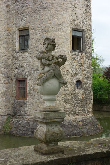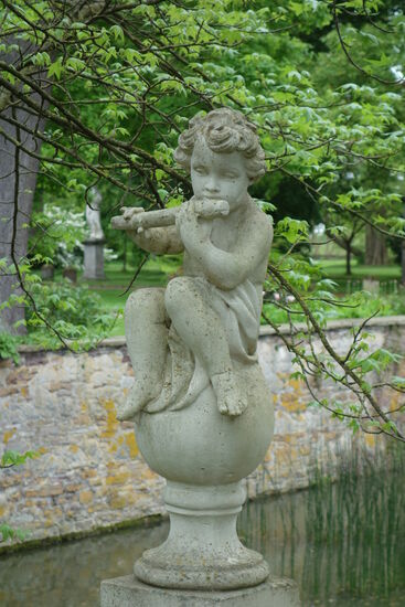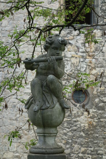 Zahlreiche musizierende Putten zieren den Park vor dem Schloß.