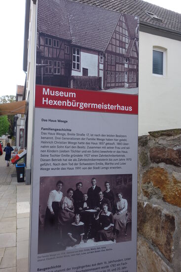 Im Jahre 1926 wurde das Heimatmuseum im Hexenbürgermeisterhaus eröffnet. Im Jahre 1937 wurde es erweitert. Dabei wurde eine Folterkammer als Museumsinszenierung eingerichtet, die es in dem privaten Bürgerhaus nie gegeben hatte.