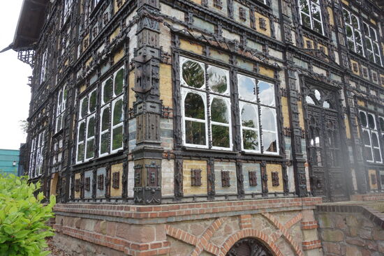 Damit ist der Renaisance-Rundgang von Lemgo abgeschlossen und uns bleibt noch ein Haus, das etwas außerhalb liegt und wir unbedingt sehen wollen: Das Junkerhaus. Daher laufen wir über den äusseren Wall bis zum Kreisverkehr am Kanzlerbrunnen.