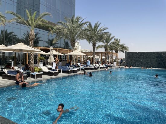 Ein umfassendes riesiges Frühstücksbuffet erwartet mich am nächsten Tag. Es gibt alles, was man sich vorstellen kann und noch viel mehr dazu. Danach verbringe ich den Vormittag noch einmal am Pool, denn es wird wieder ein sehr heisser Tag werden. Gegen Mittag erkundige ich mich bei der Rezeption, was ich in den nächsten Tagen unternehmen könnte. Natürlich ist es bereits zu spät für die City-Tour, aber die abendliche Wüstensafari kann ich buchen.