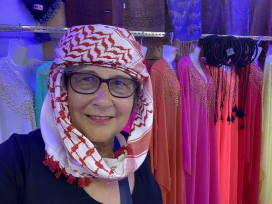 Beim Verkäufer mit den langen Kleidern und den wunderschönen Schals werde ich dann allerdings trotzdem schwach. So ein Schal schützt vor Sonne und Sand. Zuerst allerdings lasse ich mir vom Verkäufer zeigen, wie man ihn korrekt bindet. Und dann kommt noch die Frage der Farbe. Ich habe mich für schwarz entschieden, rot wäre mir aber bestimmt auch gestanden.
