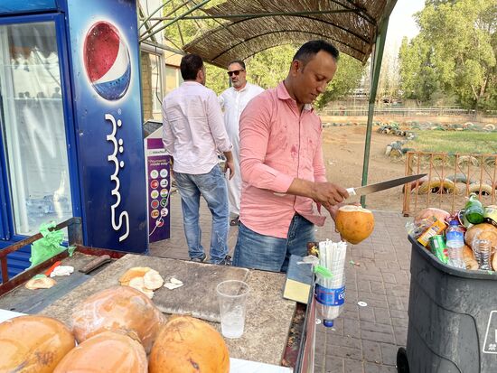 Am nächsten Stand gibt es frische Kokosnuss. Da kann ich nicht widerstehen. Sie tut gut und erfrischt.