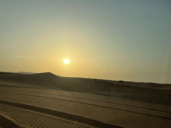 Wir verlassen die Stadt auf einer vierspurigen Autobahn. Bald haben wir die Häuser hinter uns gelassen, es gibt nur noch riesige Sandflächen. Die junge Frau, deren Namen ich mir nciht merken konnte, fragt, warum ich denn nicht nach Pakistan käme, als ich erzähle, dass ich weiterreise nach Indien. "Pakistan ist ein wunderschönes Land und man kann hier sehr gut reisen.. Ja, auch als Frau, ergänzt sie auf meine Frage."