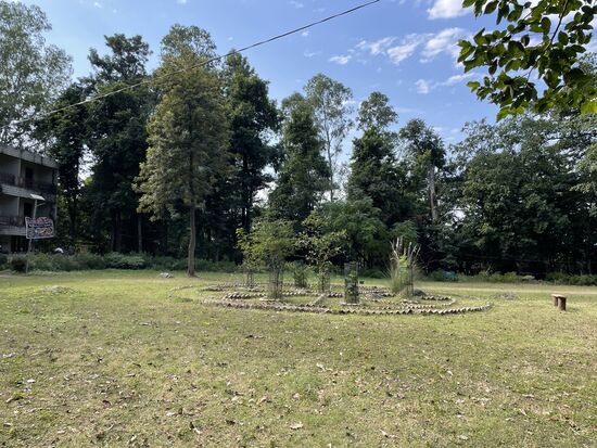 Es gibt eine grosse Wiese mit einem Meditationskreis und verschiedene Gebäude. Informationstafeln erklären deren frühere Funktionen. Es gibt ein altes Postbüro, die Küche, in der zeitweise täglich bis zu 500 Menschen bekocht wurden. Vegetarisch selbstverständlich, was damals wohl für Westler noch eine spezielle Herausforderung war. Es sind gut 50 Jahre vergangen seit dem Besuch der Beatles