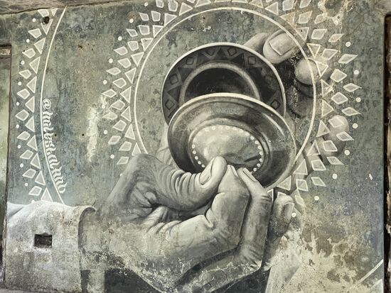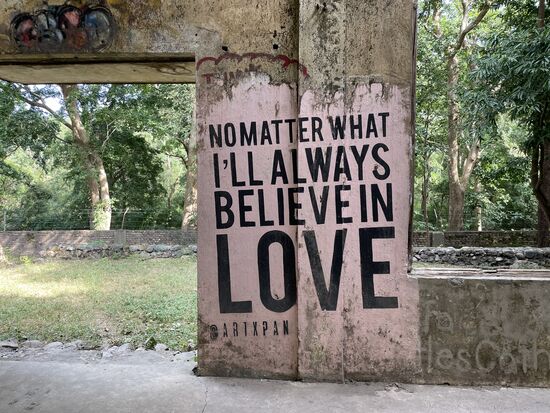 Hat Arjun von mir gute Fotos gemacht, so kann ich ihm im Gegenzug die Faszination von Graffitis zeigen, die sich separat aufgenommen, wie Gemälde machen. Wir spazieren durch die Anlage, finden da ein interessantes Sujet, dort eine pitoureske Szene und immer wieder spannende Bilder an den Wänden. Innen und aussen der alten Gemäuer. Wo sie wohl gewohnt haben? Die Beatles, in welchen Zimmern sie wohl geschlafen haben? Oben in den mehrstöckigen Hàusern oder doch eher in den niedrigen Gebäuden. Wir wissen es beide nicht, was das Spekulieren und Werweissen spannend macht. Arjun ist allerdings zu jung, um die Beatles zu ihren wichtigsten Zeiten erlebt zu haben. Ihre Musik kennt und mag er trotzdem.